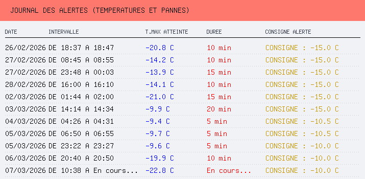 LISTING DES ALERTES (GRAND RISQUE ALIMENTAIRE AU-DESSUS DE -10 C)